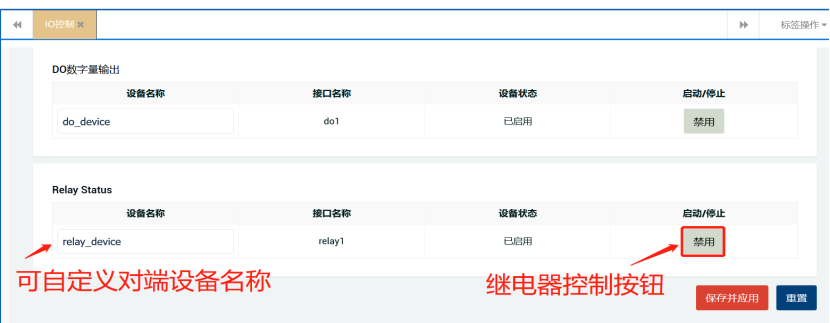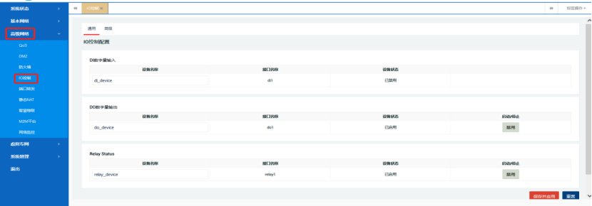 (2)登录云平台后,打开配置管理-设备配置,选择对应的分组和设备,点击IO控制即可进行相关操作,具体功能如下图: