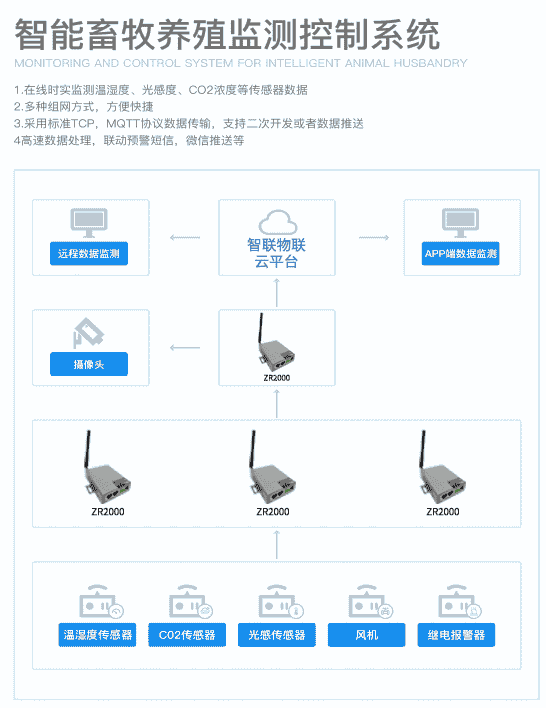 上一个方案:基于工业4G路由器的城市路灯无线通信监控系统解决方案下一个方案:基于工业4G网关的智慧工地行业解决方案在近几年的畜牧开展过程中,各大养殖户遇上了诸多挑战,如:养殖成本的不断攀升、环保压力持续加大、资源约束趋紧、国际竞争加剧、动物疫病防控形势严峻等等。这些都是制约畜牧养殖开展的因素,在过去,我们可能对这些都素手无策,但现在随着物联网技术在畜禽养殖业中的应用,畜牧养殖业又迎来了新的“春天”,智慧畜牧管理解决方案的应用更是为畜牧养殖管理给予了新的思路和新的方法。