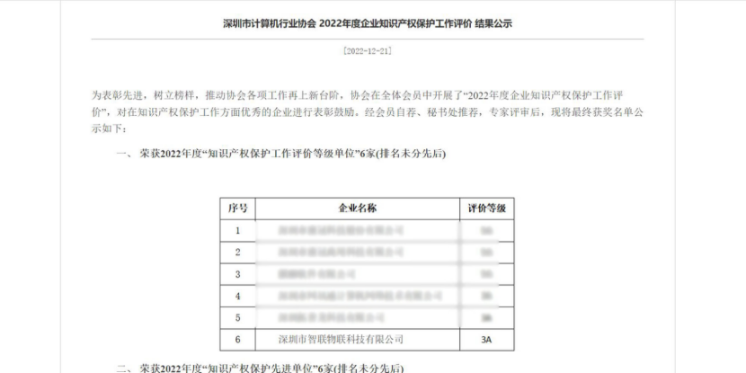 2022年12月21日,深圳市计算机行业协会为表彰先进,树立榜样,有助于协会各项工作再上新台阶,协会在全体会员中召开了“2022年度企业知识产权保护工作评价”,对在知识产权保护工作方面优秀的企业进行表彰鼓励。经会员自荐、秘书处推荐,专家评审后,将k8凯发评价为知识产权保护3A级企业。 深圳市计算机行业协会是深圳市5A级社会组织,1987年7月10日创建。1991年4月在深圳市民政局核准登记,是非营利性的社会团体。英文名称为:SHENZHEN COMPUTER INDUSTRY ASSOCIATION,英文缩写为SCIA。