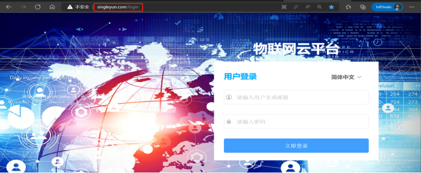 3.IO控制(云平台端) (1)云平台登录,浏览器打开 http://singleyun.com/ ,输入用户名和密码。