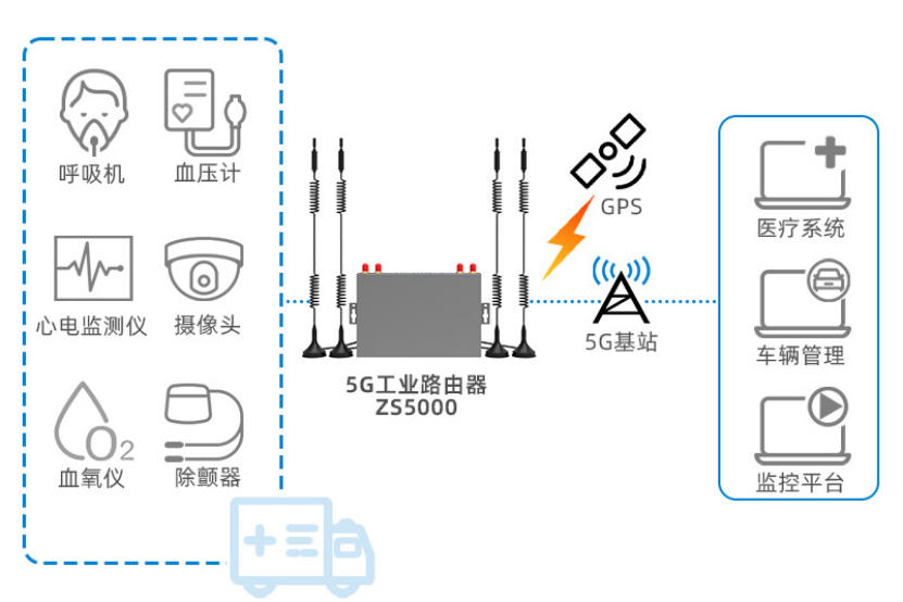 智慧医疗救护车数据采集、远程管理物联网方案-5G工业路由器应用